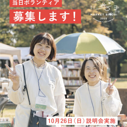 マーケット日和では、当日ボランティアさんを募集しています! 出店者さんの搬入・搬出や、本部対応、お客さんが並ぶ列の整備、...