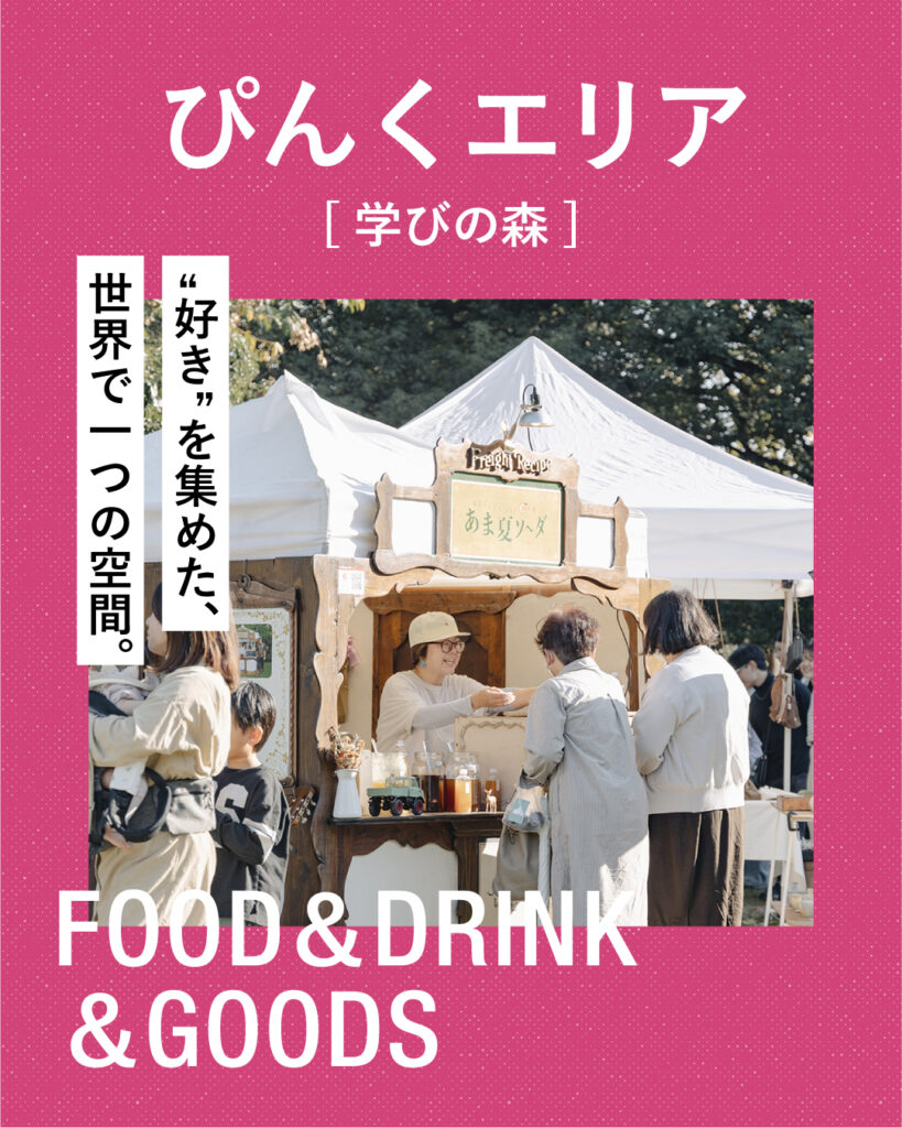おいしいごはんやお菓子やドリンク、素敵な雑貨やアクセサリー。ひとつひとつのお店が素敵な世界観を持って、この場に集まってくれました。